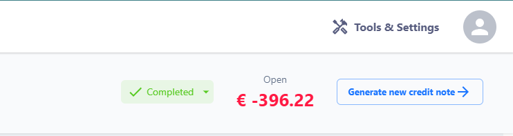 Once the information has been checked and confirmed, the credit note can be finally created using the "Generate Credit Note" button.