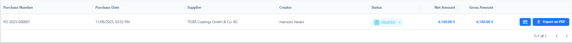 In this way, purchases can be created and sent quickly, transparently, and with minimal effort directly from the system.