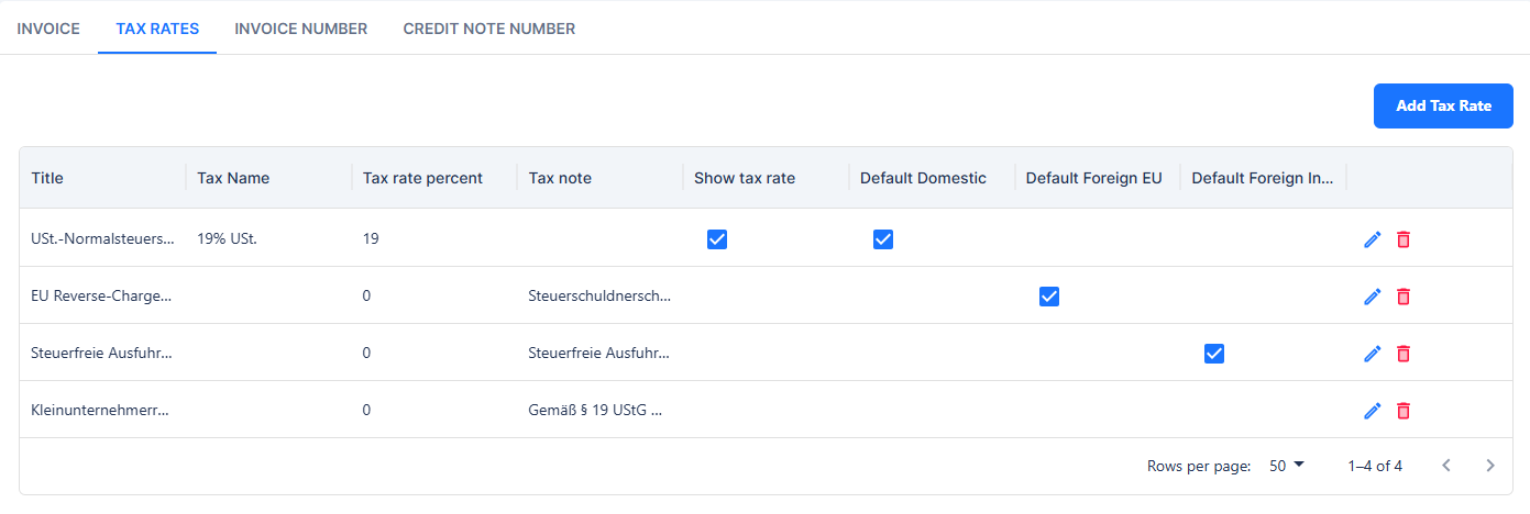 Displayed Tax Rate: The name shown on the invoice in the line items (e.g., “19% VAT”).