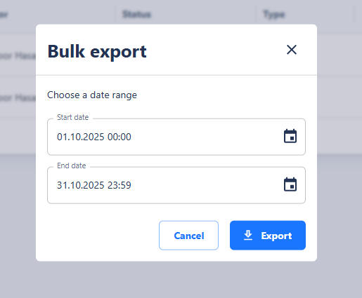 In the Invoice Overview, users have access to the Bulk Export function to export multiple invoices at once.