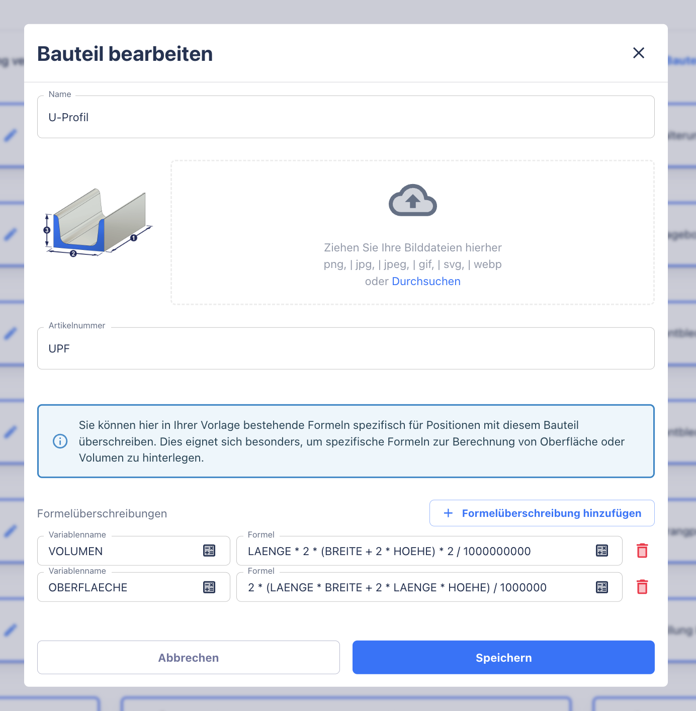 Once an item is assigned to a position, the formula override is applied automatically if it exists. Otherwise, the standard formula from the template is used. This allows you to perform individual calculations for different items without having to adjust the template for all positions.
