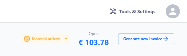 The main section contains the order positions. These positions are imported from the offer by default, but can be supplemented if additional costs arise or extra discounts are to be granted. Each position can be edited or deleted as long as it has not yet been marked as invoiced. Once a position has been invoiced, its status changes from “not invoiced” to “invoiced,” and it can no longer be edited.